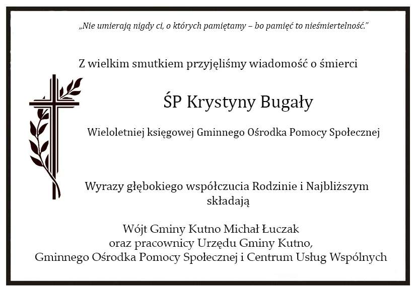 Kondolencje od Wójta Gminy Kutno oraz pracowników Urzędu, GOPS i CUW.