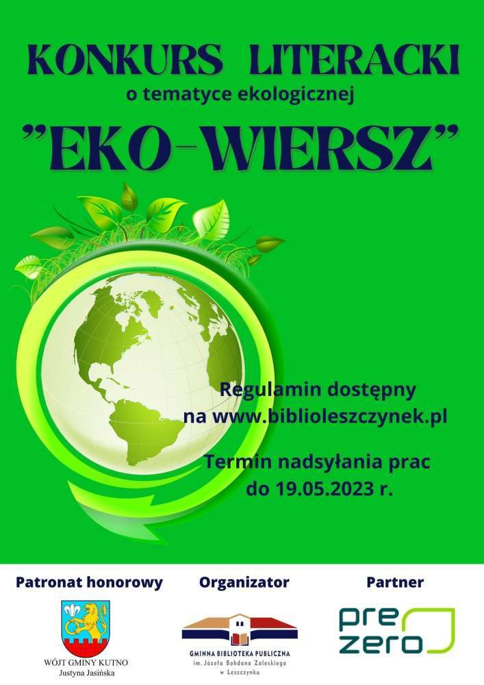 Regulamin konkursu dostępny pod linkiem https://biblioleszczynek.pl/konkurs-literacki-eko-wiersz