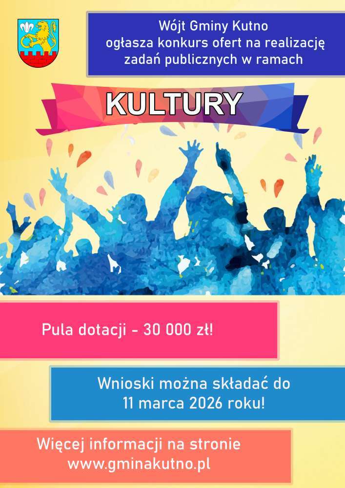 1) wspieranie działalności kulturalnej we współpracy lub partnerstwie z Centrum Kultury Gminy Kutno i Gminną Biblioteką Publiczną;
