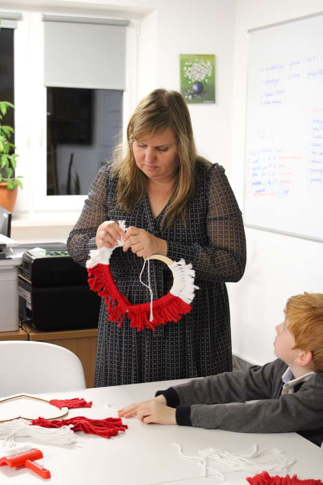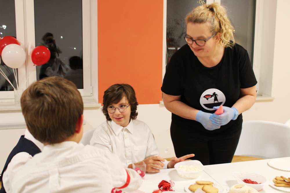 Równocześnie odbywały się warsztaty rękodzielnicze - „Patriotyczne serce z makramy" przeprowadzone przez Instruktorki sekcji artystycznej w CKGK oraz cukiernicze, prowadzone przez Koło Gospodyń Wiejskich „Siła Kobiet" w Bielawkach. Uczestnicy mogli własnoręcznie wykonać pamiątkowe ozdoby i spróbować tradycyjnych słodkości.
