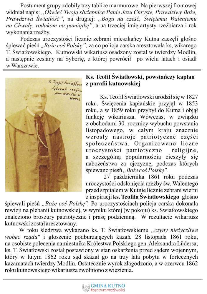 Poniżej zamieszczamy broszurę z informacjami o księżach, którym poświęcona jest tablica oraz wydarzeniach historycznych związanych z Powstaniem Styczniowym na terenie gminy Kutno.
