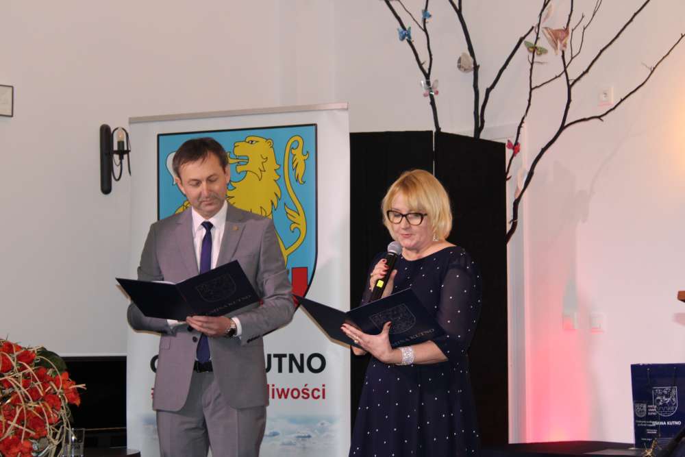 Gminną uroczystość prowadzili Jolanta Mikołajczyk Kierownik Działu Organizacyjnego i Jacek Saramonowicz Sekretarz Gminy Kutno.