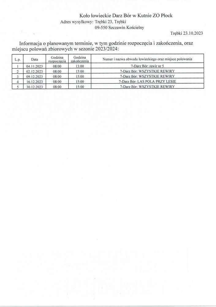 Poniżej treść obwieszczenia Wójt Gminy Kutno dotyczącego terminów rozpoczęcia i zakończenia i miejsc polowań Koła Łowieckiego Darz Bór