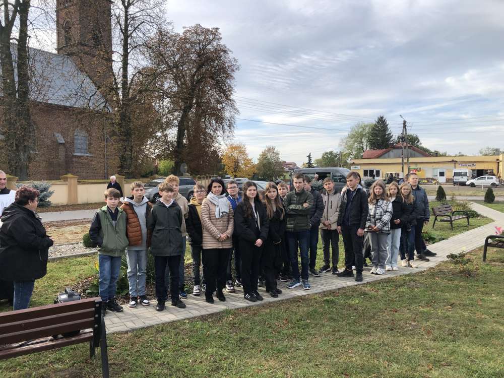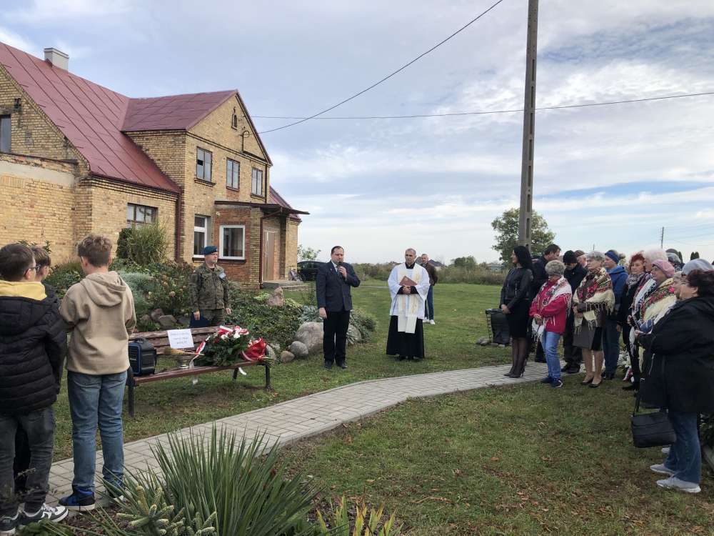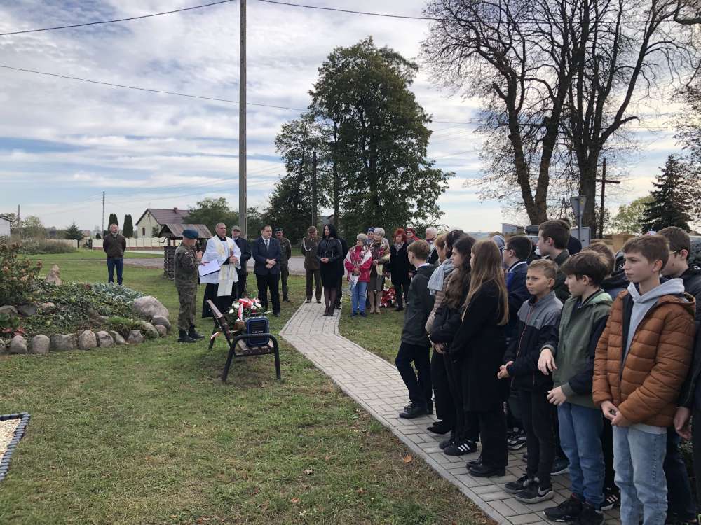 Tablicę odsłonili uczniowie Szkoły Podstawowej im. Kornela Makuszyńskiego w Strzegocinie - Oliwia Kubiak i Ksawery Przybysz. Następnie proboszcz parafii w Strzegocinie ks. Andrzej Rzeźnicki odmówił modlitwę za zmarłych i poświęcił tablicę.