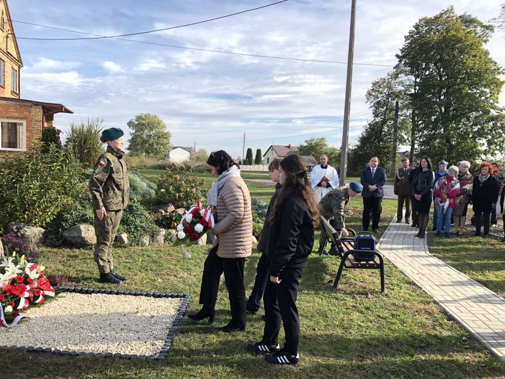 W ostatnim punkcie uroczystości uczestnicy obchodów złożyli kwiaty pod obeliskiem z tablicą: w imieniu Samorządu gminy Kutno Wójt Gminy Kutno Michał Łuczak i Radna Gminy Kutno Katarzyna Wiwała, uczniowie Szkoły Podstawowej w Strzegocinie z opiekunką Panią Beatą Kiełbasą oraz z Panią dyrektor Beatą Przybysz Jurkowską, Naczelnik Oddziałowego Biuro Upamiętniania Walk i Męczeństwa IPN w Łodzi Bartosz Bijak, członkowie Towarzystwa „Strzelec".