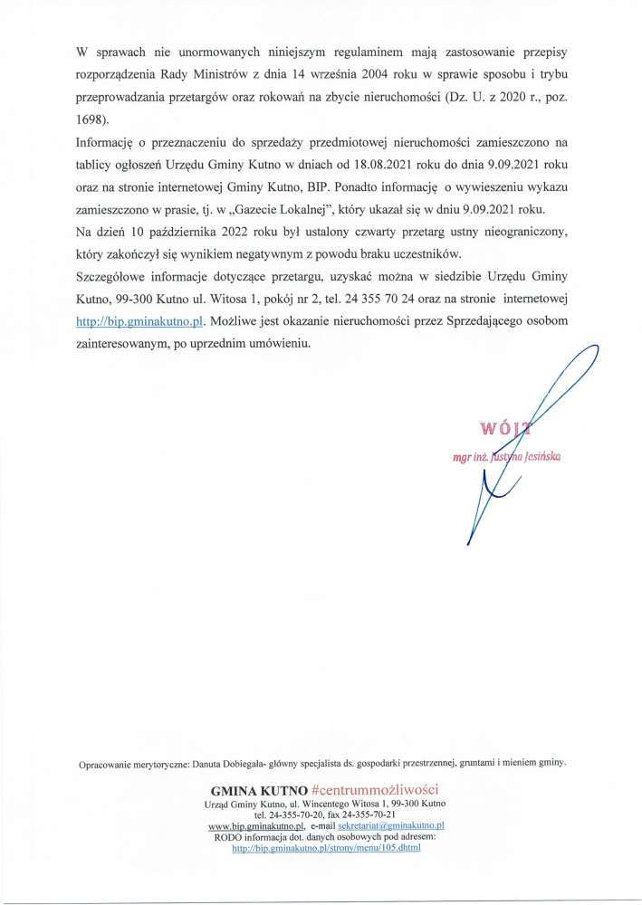 Wójt Gminy Kutno Justyna Jasińska ogłasza przetarg ustny nieograniczony na sprzedaż nieruchomości w Byszewie. Poniżej treść ogłoszenia.