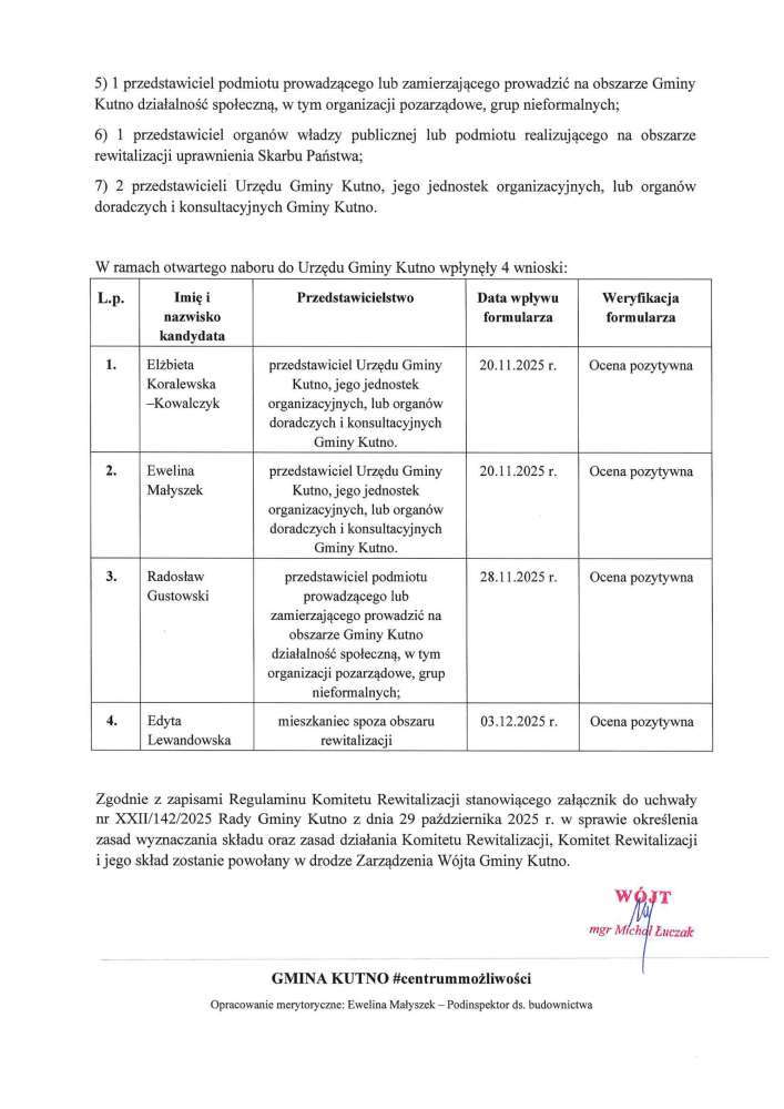 Poniżej treść ogłoszenia wójta gminy Kutno o wynikach  naboru Członków do Komitetu Rewitalizacji.
