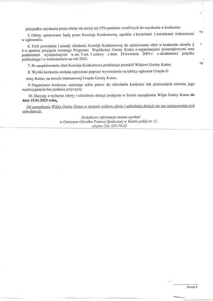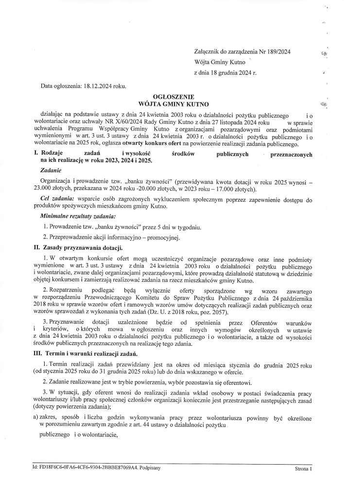 Poniżej treść ogłoszenie Wójta Gminy Kutno dot.  otwartego konkursu ofert na realizację zadania publicznego.