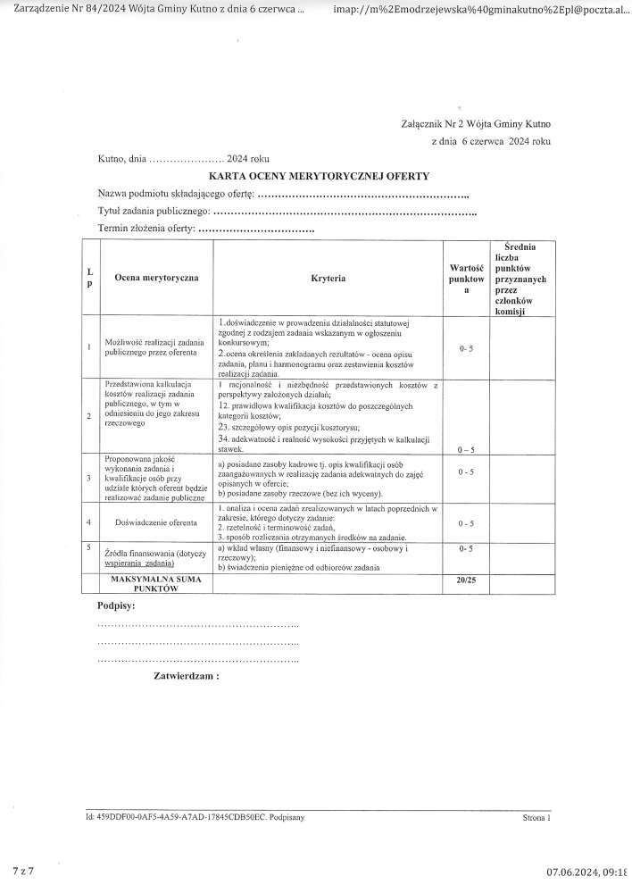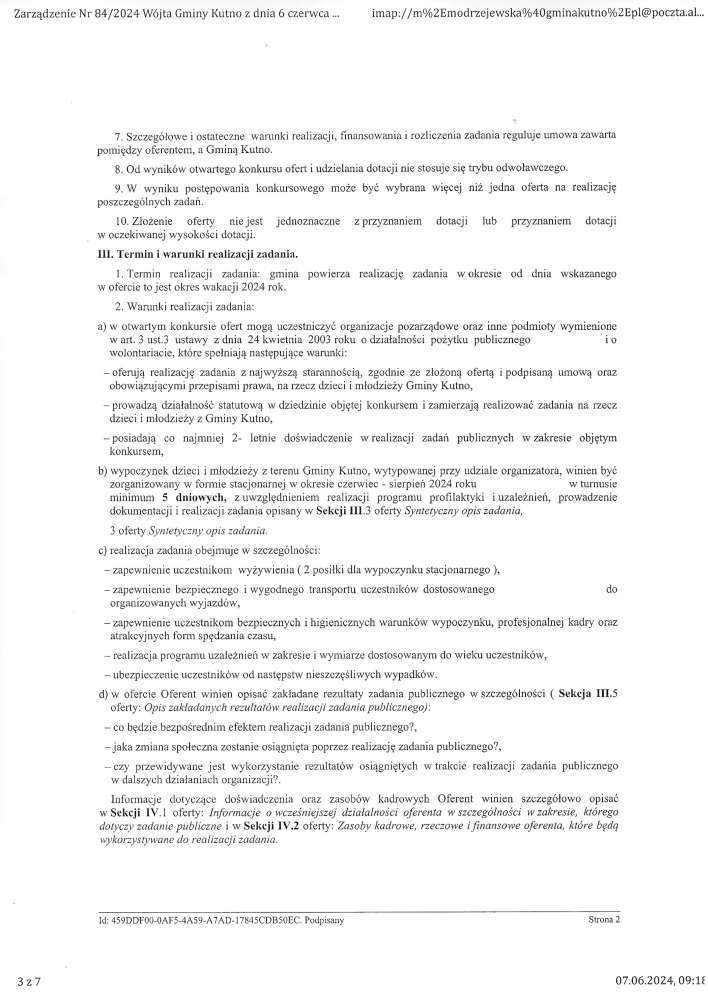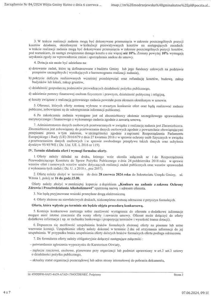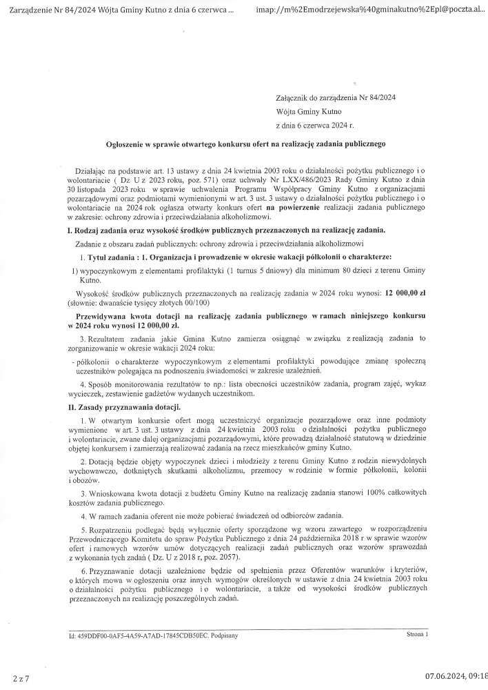 Poniżej treść zarządzenia Wójta Gminy Kutno dot. ogłoszenia otwartego konkursu ofert na realizację zadania publicznego