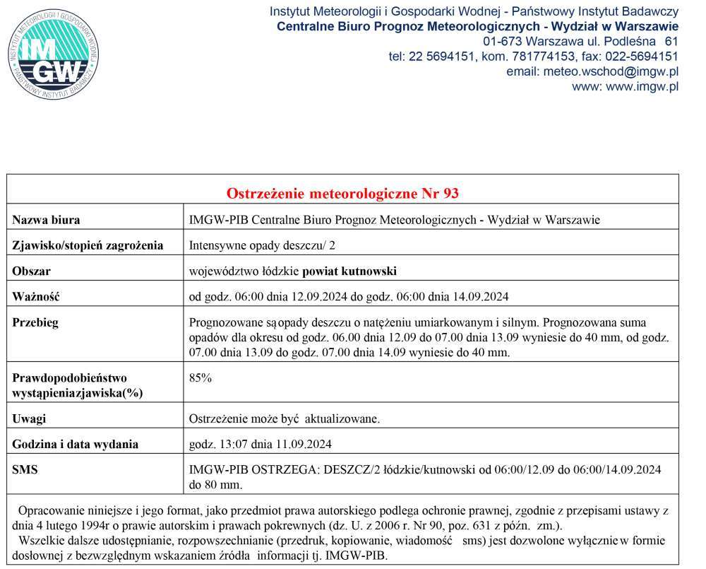 Ostrzegamy przed intensywnymi opadami deszczu.
