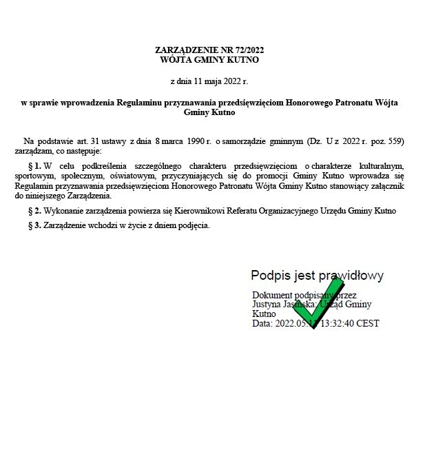 Informujemy o możliwości ubiegania się o Honorowy Patronat Wójta Gminy Kutno