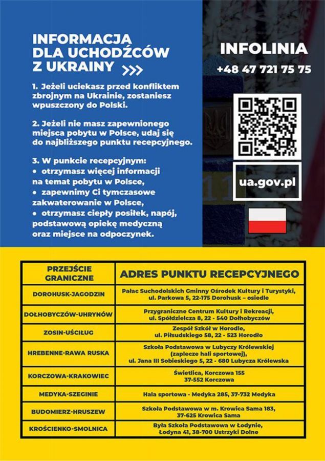 Więcej informacji dotyczących pomocy obywatelom Ukrainy znajdziecie Państwo na stronie https://pomagamukrainie.gov.pl/