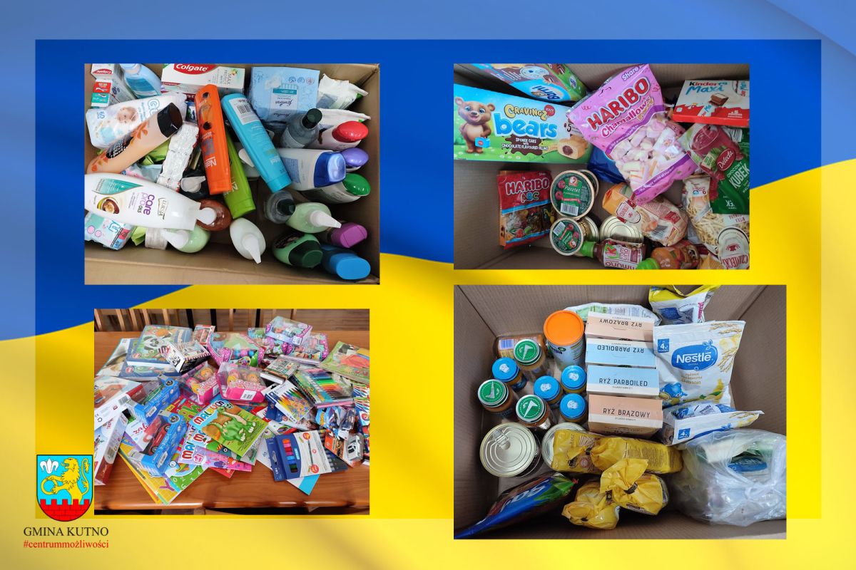 Pracownicy Urzędu Gminy Kutno, Gminnego Ośrodka Pomocy Społecznej i Centrum Usług Wspólnych zorganizowali zbiórkę darów dla obywateli Ukrainy, którzy przebywają na terenie gminy Kutno. Zbierano żywność, kosmetyki oraz artykuły dla dzieci - kaszki, słodycze, zabawki i artykuły szkolne, które zostaną przekazane potrzebującym.