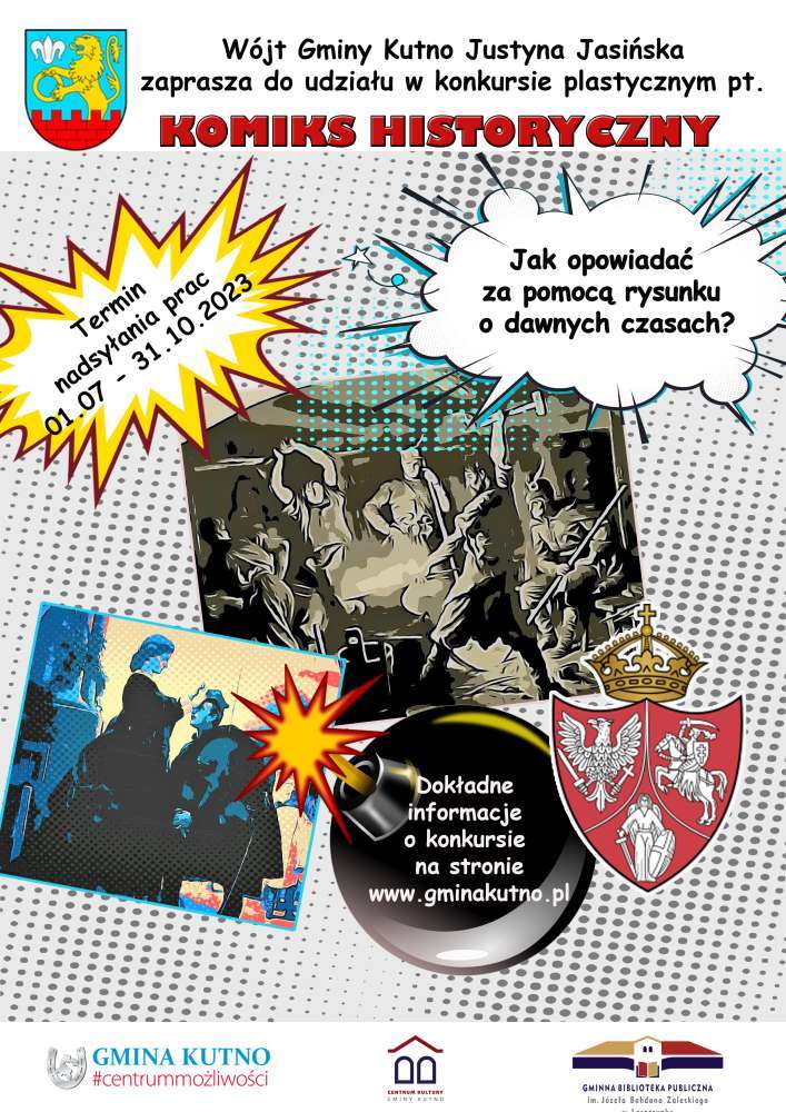 Wójt Gminy Kutno Justyna Jasińska zaprasza do udziału w konkursie „Komiks historyczny. Jak opowiadać za pomocą rysunku o dawnych czasach"