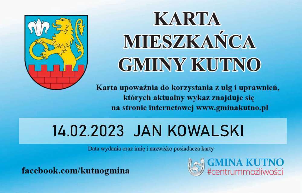 Przypominamy, że Karty Mieszkańca Gminy Kutno są ważne przez rok od momentu odebrania karty w Urzędzie Gminy Kutno .