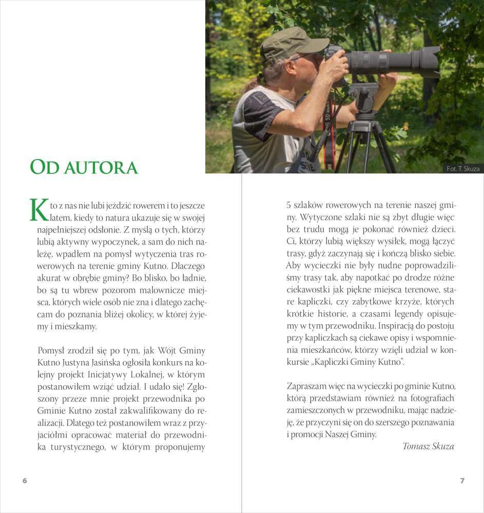 Zapraszamy do obejrzenia w wersji elektronicznej przewodnika rowerowego "Poznaj gminę Kutno", w którym zostały zaprezentowane ciekawe i warte zobaczenia miejsca gminy Kutno a także kapliczki, które zostały opisane i sfotografowane przez mieszkańców w ramach konkursu "Kapliczki gminy Kutno". Autorem albumu jest Tomasz Skuza.