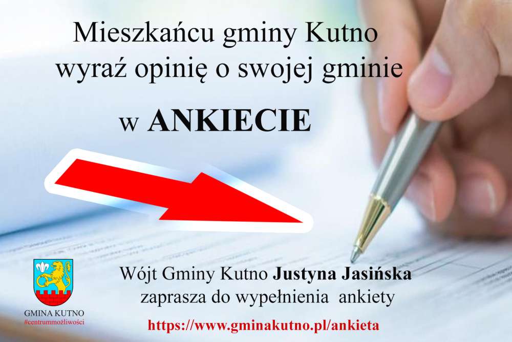 Zależy nam na poznaniu Państwa opinii na temat jakości życia w Gminie Kutno, dlatego zapraszamy Państwa do wypełnienia anonimowej ankiety. Opinia mieszkańców Gminy Kutno będzie dla nas nieocenioną wskazówką do dalszej pracy dla podniesienia poziomu i jakości życia rodzin, dzieci, seniorów oraz wzmocnienia aktywności grup społecznych, stowarzyszeń i organizacji.