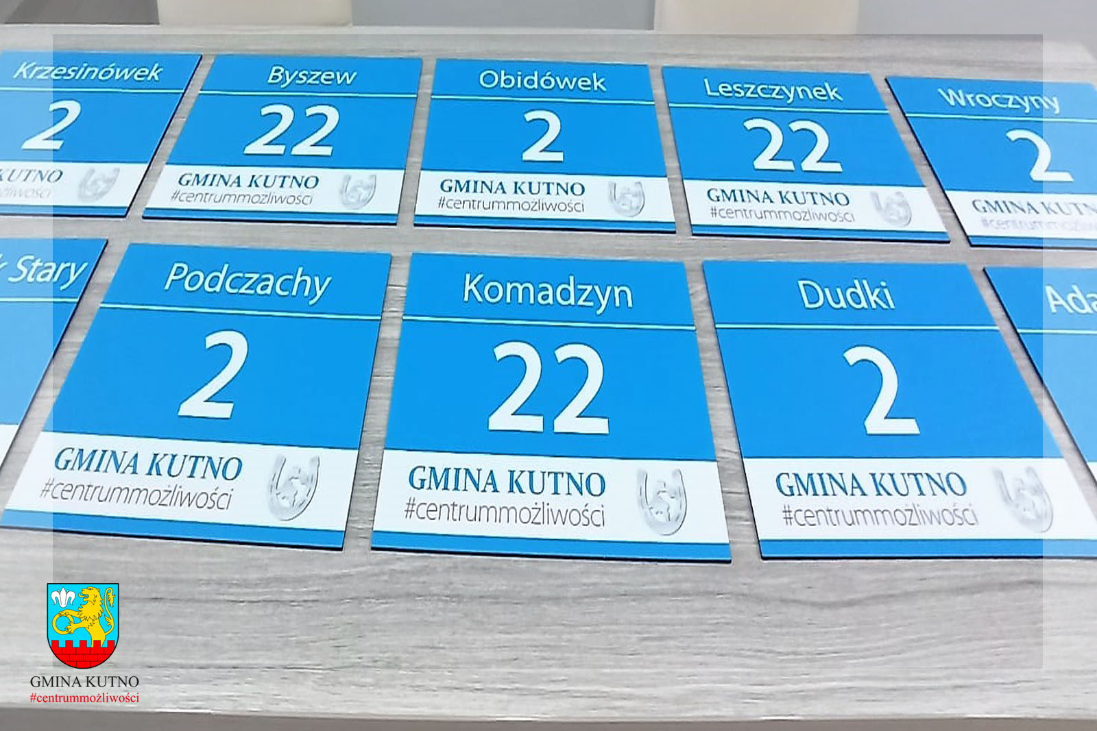 Przepisy nie wskazuje jak powinna wyglądać tabliczka z numerem porządkowym. W Urzędzie Gminy Kutno przygotowaliśmy przykładowy wzór tabliczki adresowej, która jest w kolorze błękitu nawiązującego do koloru w herbie naszej gminy z logotypem Gmina Kutno #centrummożliwości. Dedykowane tabliczki adresowe mają służyć budowaniu autentycznej więzi z Gminą Kutno jako miejscem zamieszkania oraz jednoczyć społeczność lokalną.