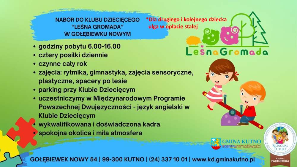 Trwa rekrutacja do Klubu dziecięcego Leśna Gromada. Zapraszamy do zapoznania się z ofertą.