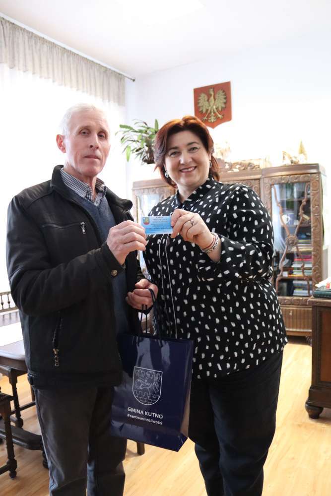 Mamy przyjemność poinformować, że w dniu dzisiejszym mieszkaniec naszej gminy - Pan Leszek odebrał z rąk Wójt Gminy Kutno Justyny Jasińskiej Kartę Mieszkańca Gminy Kutno z nr 1000! Wraz z kartą mieszkaniec otrzymał gadżety promocyjne Gminy Kutno.