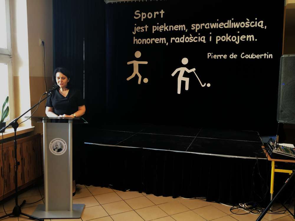 Dyrektor szkoły Pani Beata Jurkowska – Przybysz podkreśliła jak ważną rolę w życiu dzieci odgrywa sport oraz w imieniu swoim, nauczycieli oraz uczniów serdecznie podziękowała wszystkim, którzy do tego remontu się przyczynili.