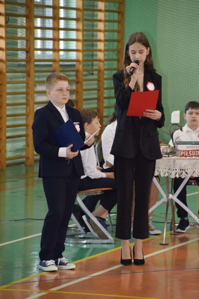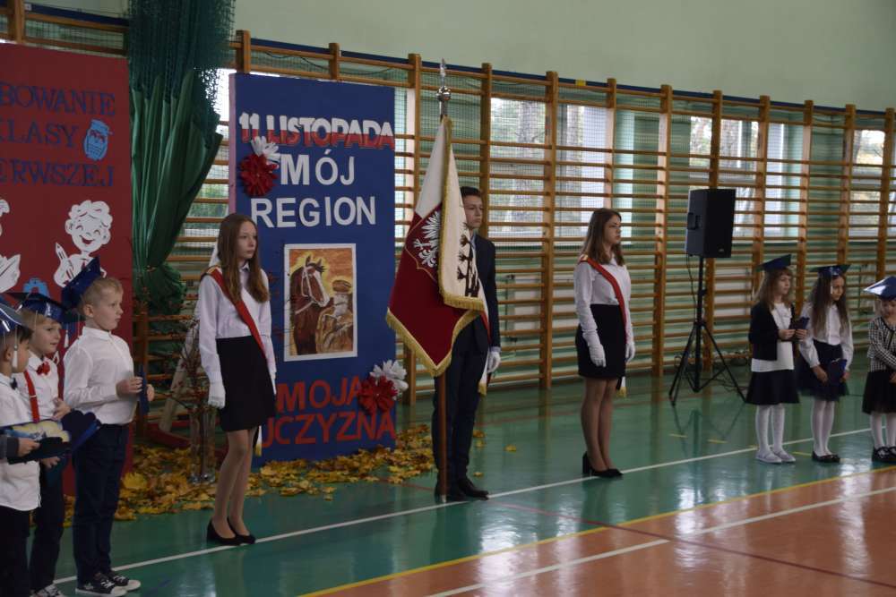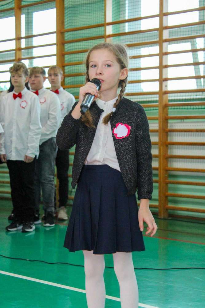 Pierwszoklasiści przygotowali program artystyczny, w którym pięknie i z przejęciem zaprezentowali swoje umiejętności recytatorskie i wokalne. Uczniowie klas starszych przybliżyli wszystkim w patriotycznych wierszach i piosenkach historię odzyskania przez Polskę niepodległości.