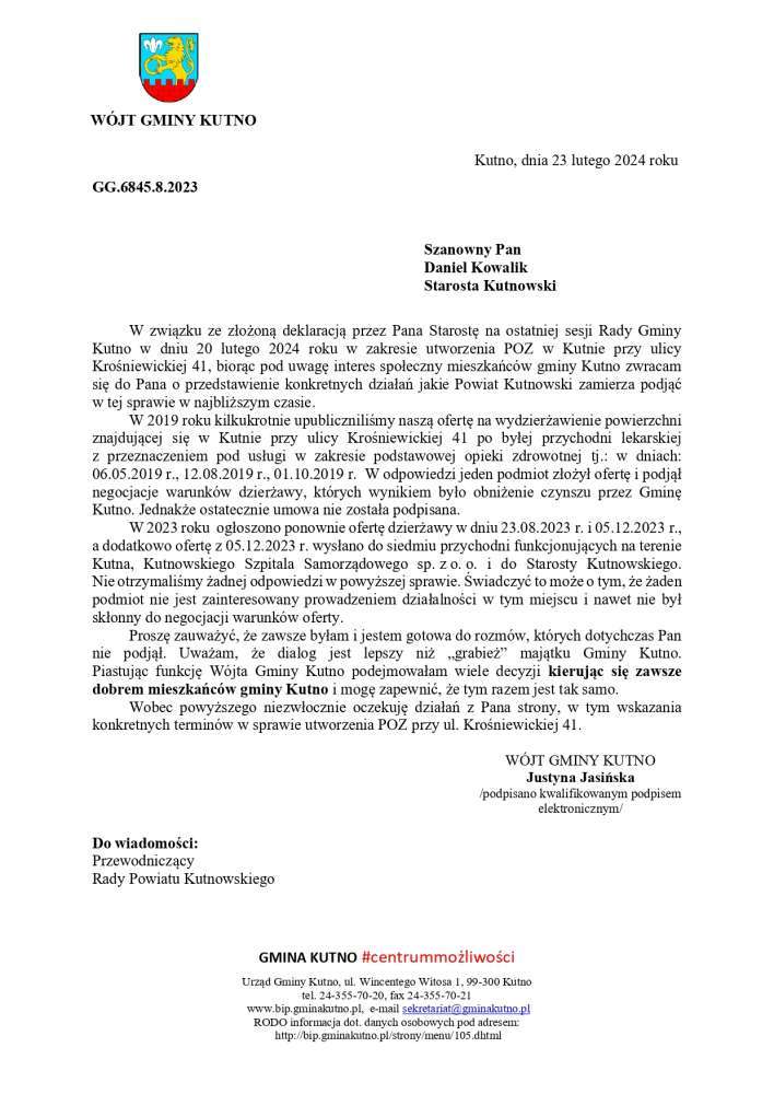 Stanowisko Wójt Gminy Kutno Justyny Jasińskiej w sprawie majątku Gminy Kutno
