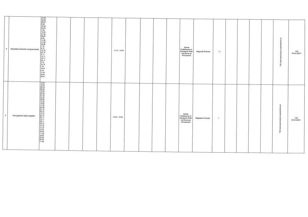 Poniżej przedstawiamy szczegółowy harmonogram wsparcia dla szkoły podstawowej we Wroczynach w ramach projektu "Gmina Kutno stawia na kompetencje".