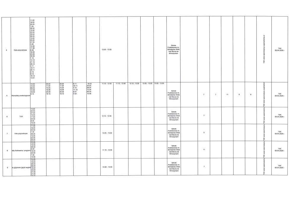 Szczegółowy harmonogram wsparcia dla szkoły we Wroczynach