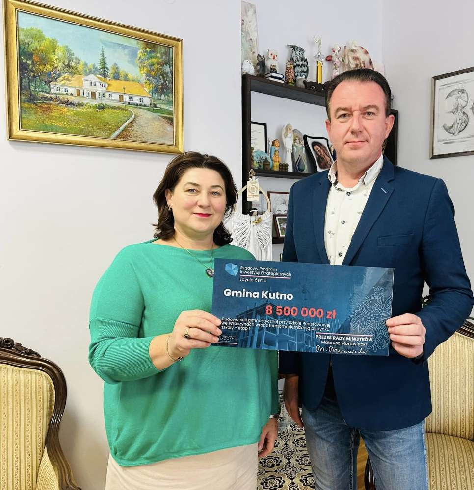 Miło nam poinformować, że Gmina Kutno otrzymała dotację z Rządowego Programu Inwestycji Strategicznych. Wójt Gminy Kutno Justyna Jasińska odebrała z rąk Senatora Przemysława Błaszczyka promesę w wysokości 8 500 000 zł Środki te zostaną przeznaczone na budowę długo wyczekiwanej sali gimnastycznej przy Szkole Podstawowej we Wroczynach wraz z termomodernizacją budynku szkoły.