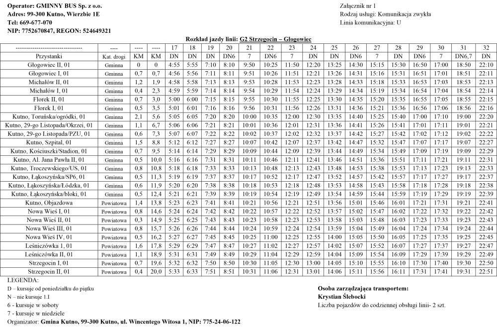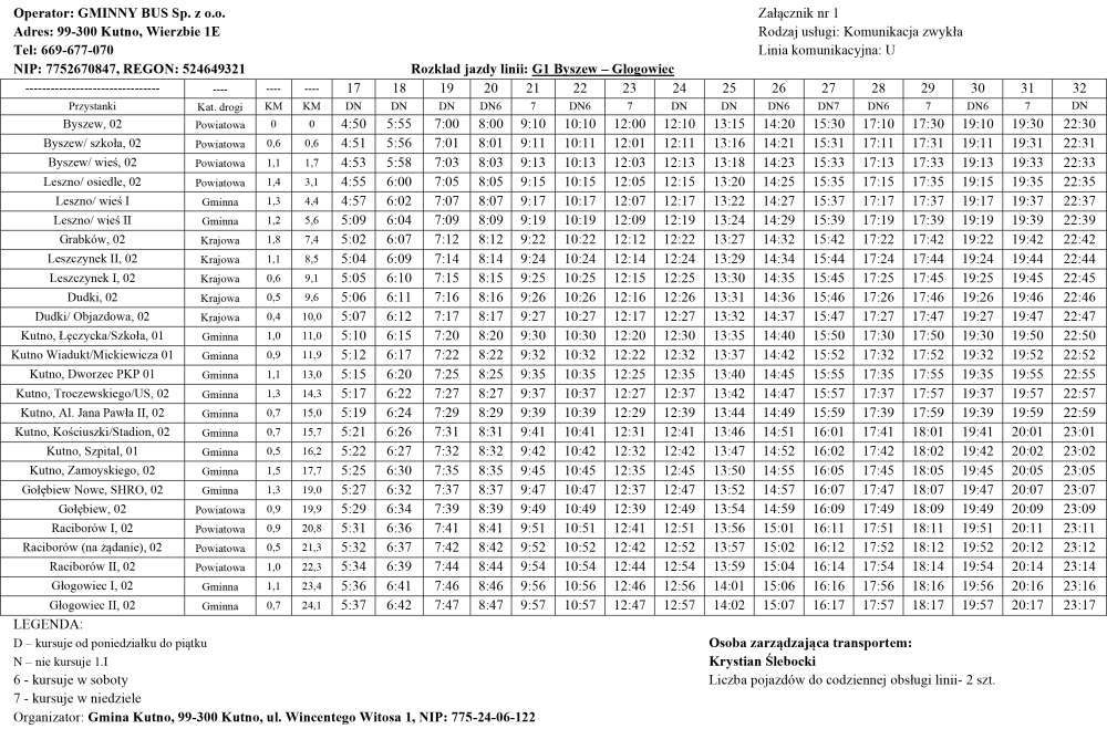 Poniżej rozkłady jazdy busów na w/w trasach.