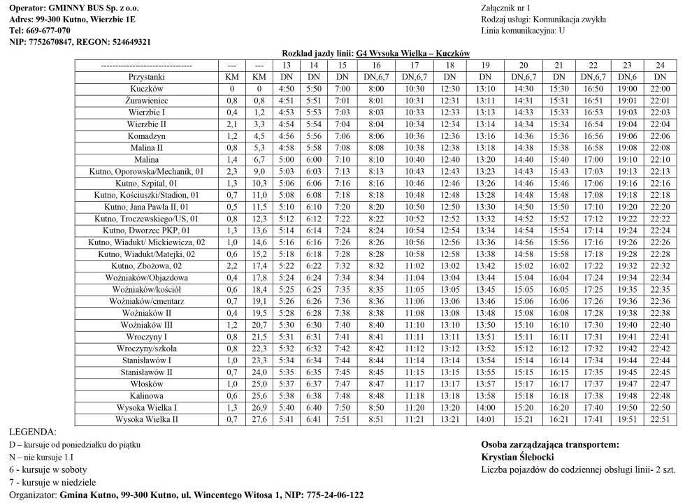 G4 Wysoka Wielka – Kuczków. Linia G4 zostaje wydłużona do miejscowości Kuczków przez Wierzbie