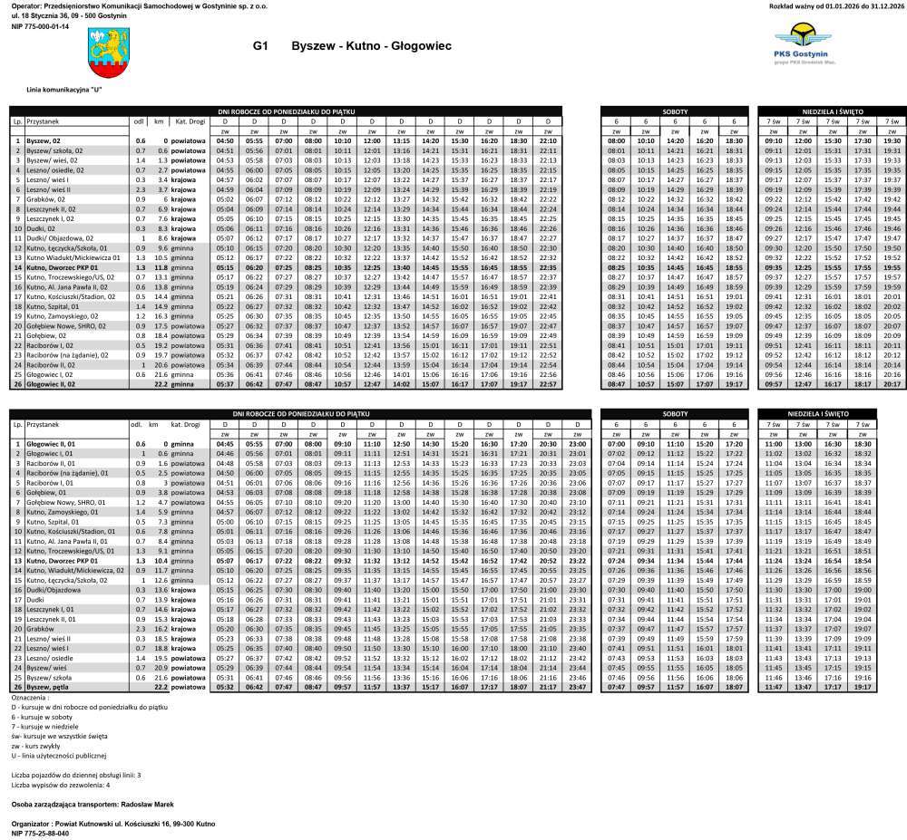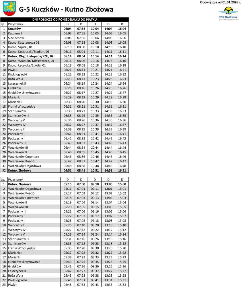 Transport publiczny na terenie Gminy Kutno w 2026 roku - aktualne rozkłady jazdy