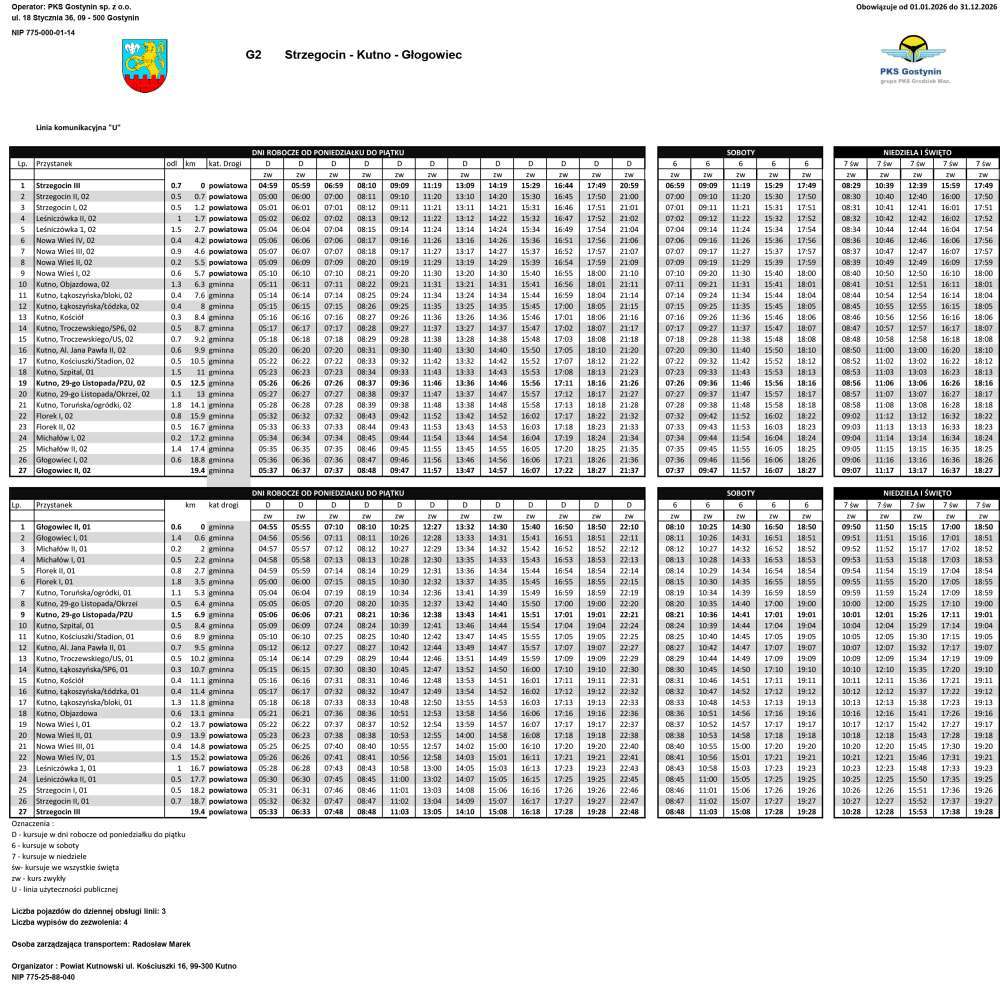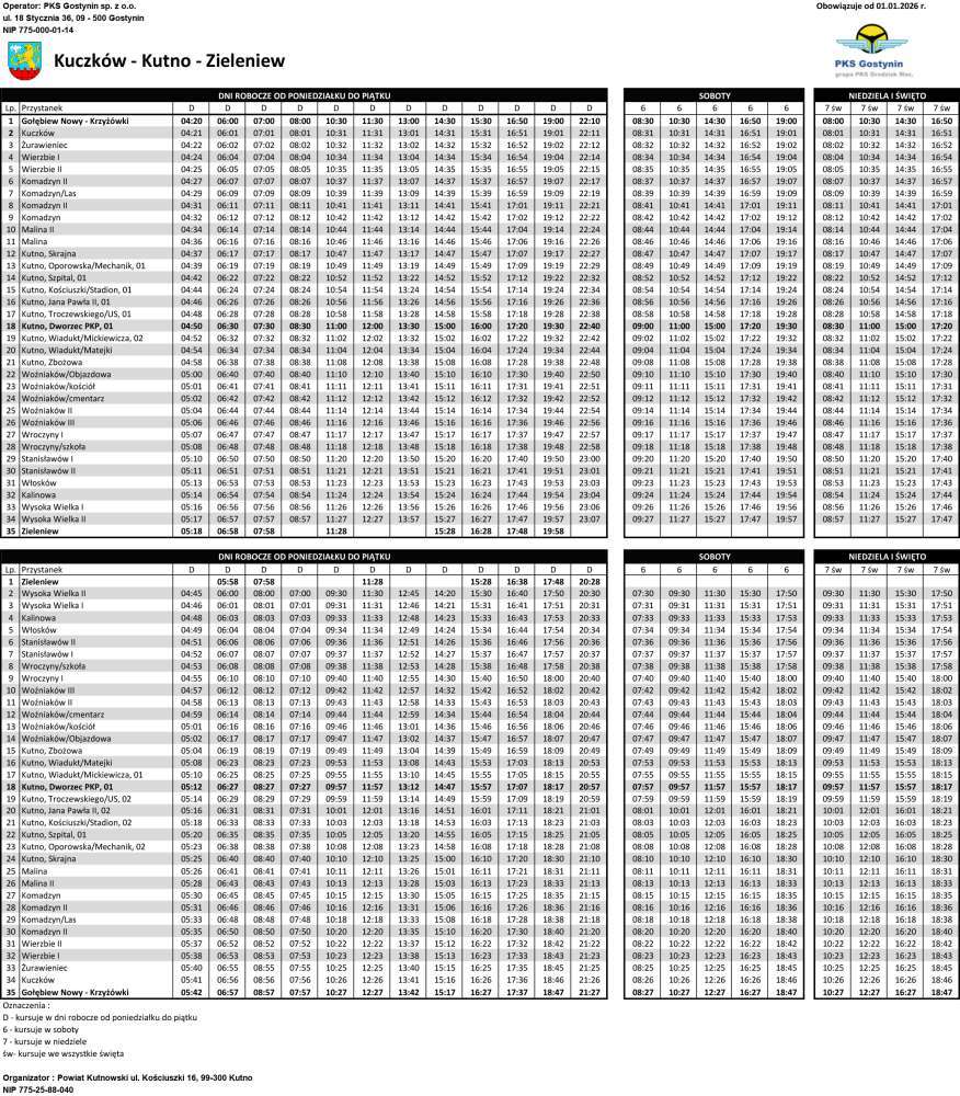 Informujemy, że od dnia 01 stycznia 2026 roku usługi w zakresie publicznego transportu zbiorowego na terenie Gminy Kutno świadczyć będzie firma PKS Gostynin Sp. z o.o.