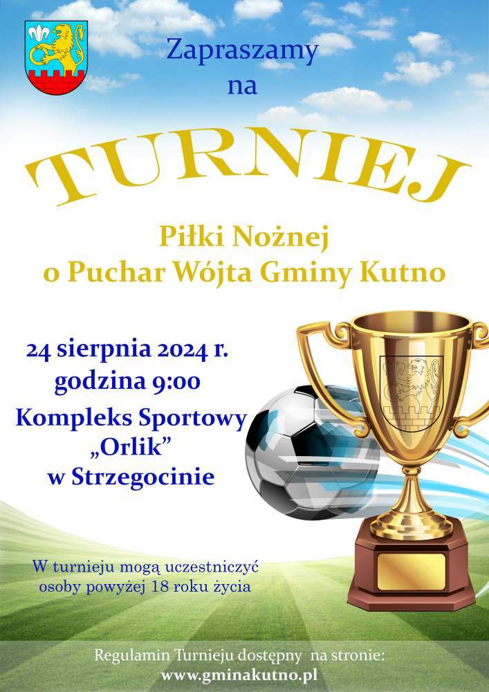 Wszystkich fanów piłki nożnej zapraszamy w najbliższą sobotę do Strzegocina, gdzie odbędzie się Turniej piłki nożnej o Puchar Wójta Gminy Kutno. Rozpoczęcie o godzinie 9:00 . Rywalizować będzie 6 drużyn: