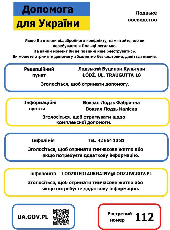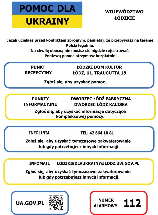 Poniżej ważne informacje dla obywateli Ukrainy, którzy przebywają w województwie łódzkim.