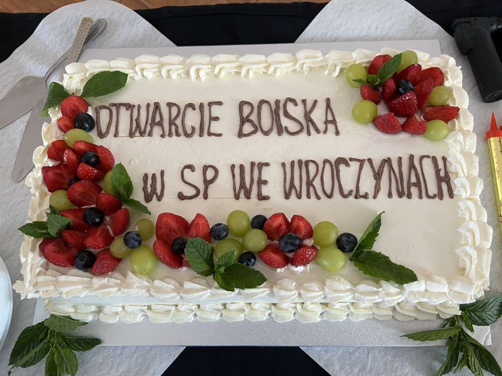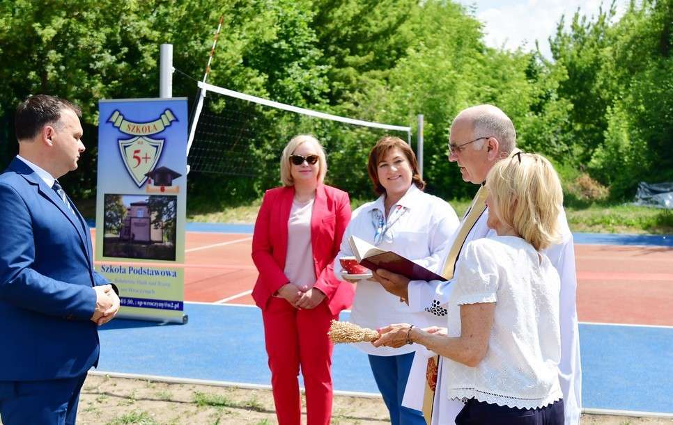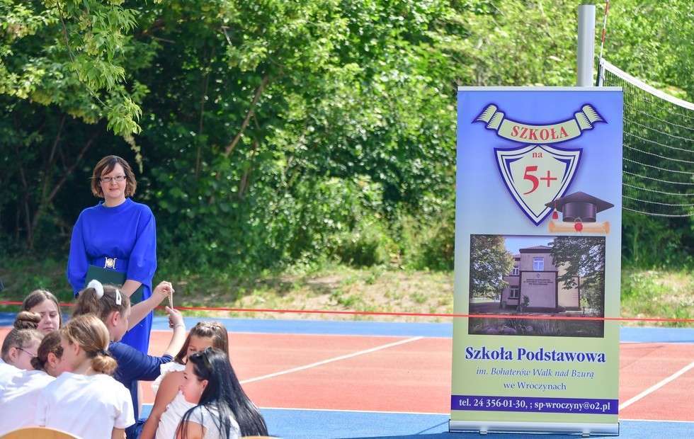 16 czerwca 2023 roku nastąpiła długo oczekiwana uroczysta inauguracja otwarcia boiska do siatkówki w Szkole Podstawowej we Wroczynach. Wszystkich zebranych powitała p. dyrektor szkoły Beata Cieślak, która w swoim krótkim przemówieniu wyraziła radość i satysfakcję z faktu, że uczniowie i mieszkańcy będą mogli korzystać z boiska. Ponadto w serdecznych słowach podziękowała za powstanie boiska.
