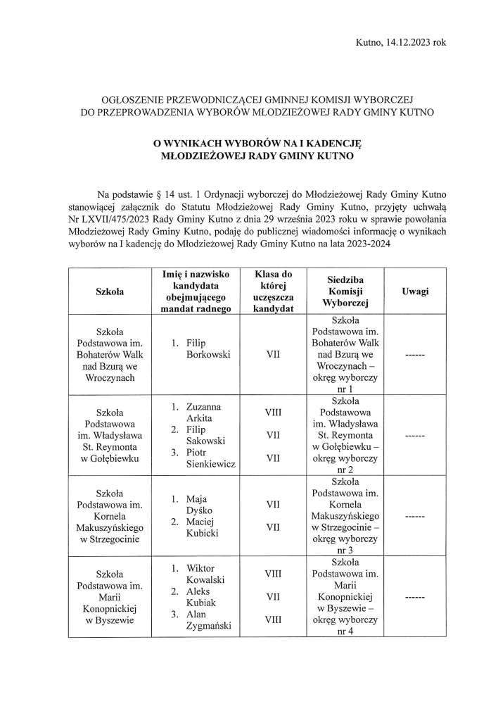 Wyniki wyborów do Młodzieżowej Rady Gminy Kutno