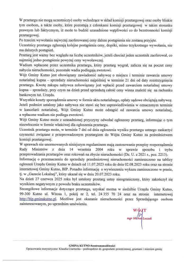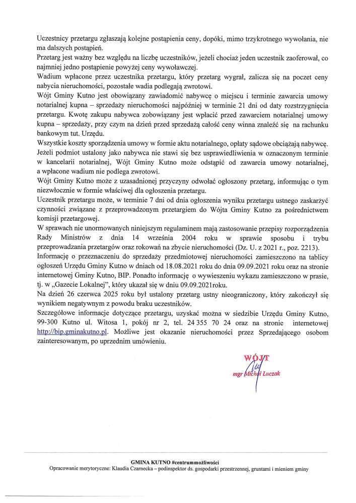 Poniżej treść ogłoszeń Wójta Gminy Kutno przetargów ustnych nieograniczonych na sprzedaż nieruchomości .