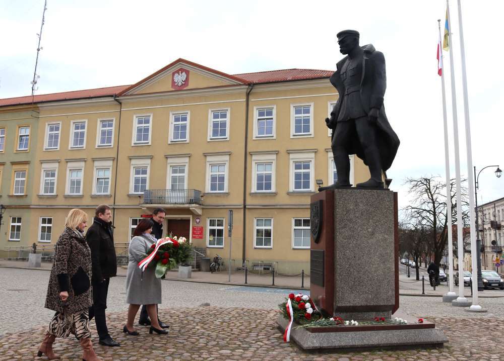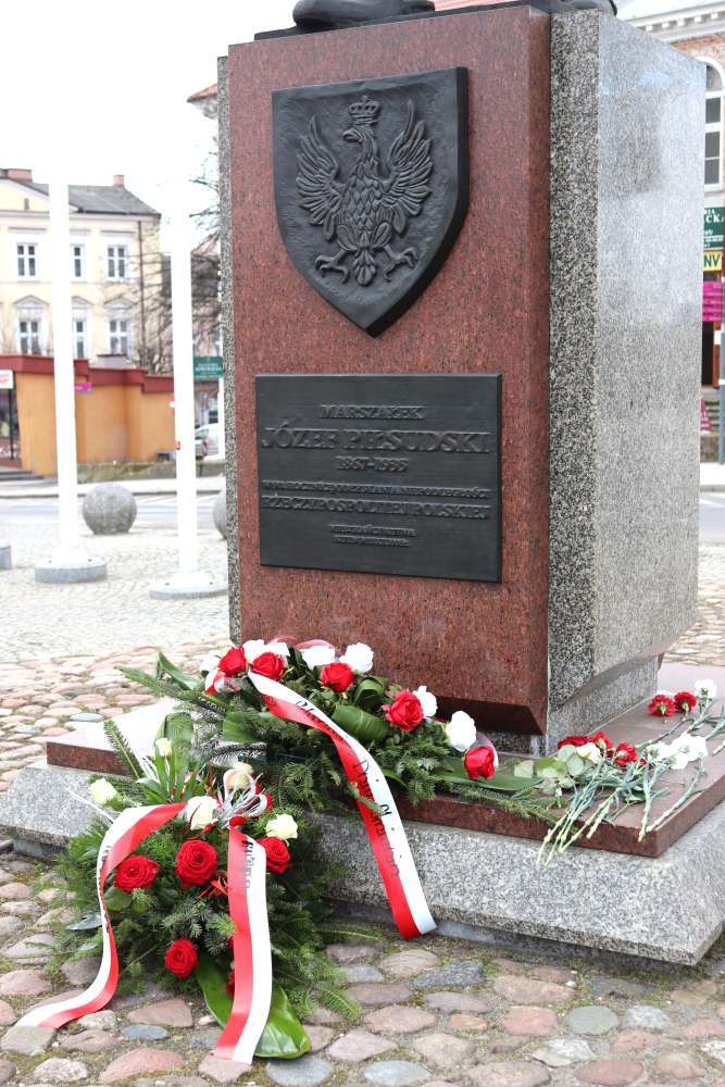 Złożenie kwiatów pod tablicą pamiątkową i pomnikiem Marszałka Józefa Piłsudskiego z okazji imienin